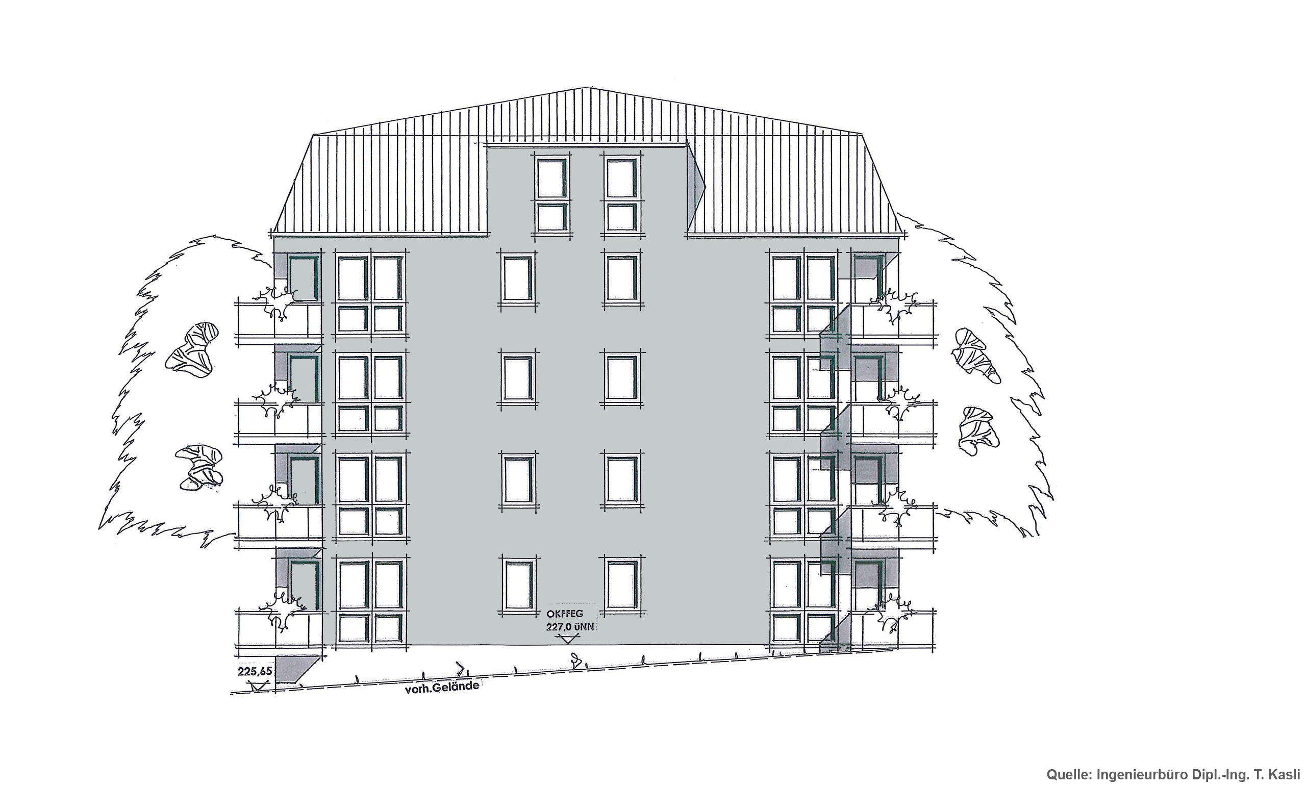 Nr. 7 Neubau eines Mehrfamilienhauses mit 3 x 5 WE und 1 x 3 WE Bauort: Glockenblumenweg in 34128 Kassel Zusatz: Tiefgarage Status: Planungsphase
